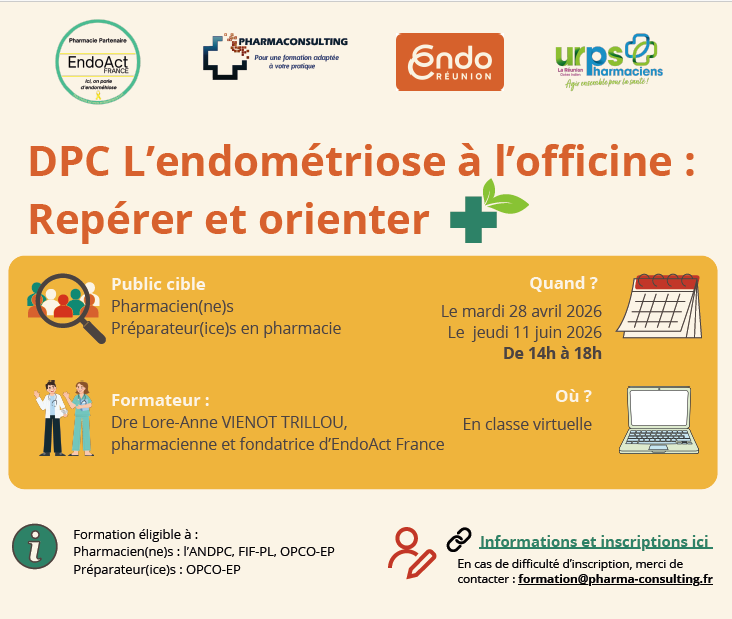 Votre URPS, en partenariat avec EndoRéunion et EndoAct France, vous présente “l’endométriose à l’officine”